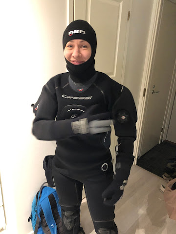 Kaikki sujui kuitenkin oikein mukavasti, veden ollessa vilpoisaa 2 asteista. Takana on nyt neljä kuivapukusukellusta ja innostus ja halu oppia paremmaksi sukeltajaksi vain kasvaa.